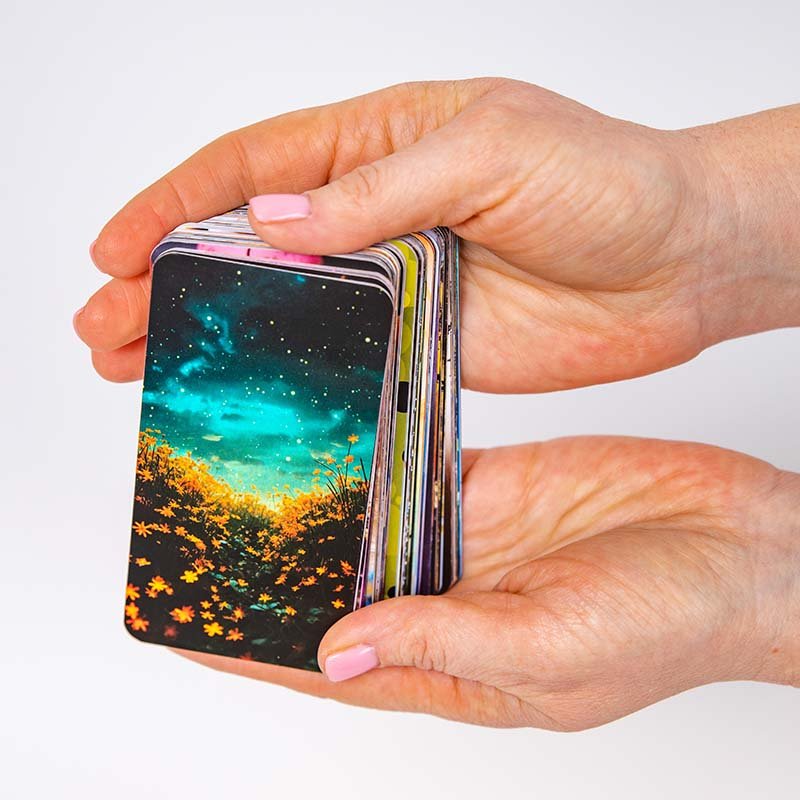 Колода створена для глибинного дослідження та усвідомлення власного емоційного світу через візуальні метафори.