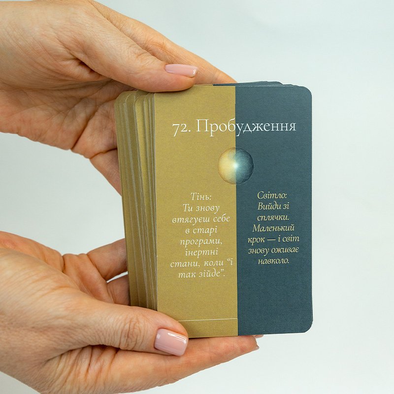 - 72 авторські карти з парною логікою «Тінь ↔ Світло».