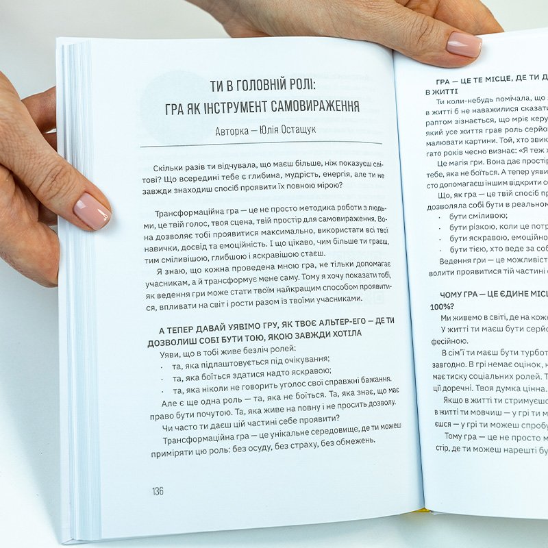 Книга надає ясний каркас: від ролі гри у бізнес‑навчанні до етики й екології процесу. Книга заснована на реальних історіях випускників програм зі створення та проведення ігор: це живий досвід, що доводить ефективність підходу й дає готові рішення.