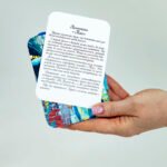 - 36 двосторонніх карт (90х130 мм): на одній стороні — унікальний візуальний символ, на іншій — глибоке смислова техніка, що відкриває нові грані для роздумів і рефлексії.