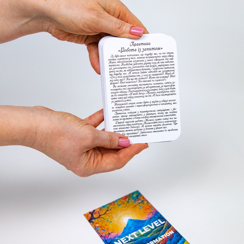 Next Level of Transformation — це інструмент для професіоналів, які прагнуть не просто допомагати, а створювати справжню трансформацію у своїх клієнтів. Гра створена на основі сучасних психологічних підходів, коучингових методик, арт-терапевтичних прийомів і перевірених практик особистісного розвитку. Вона поєднує глибину, практичність і творчість, щоб кожен учасник зміг відчути себе автором власних змін.