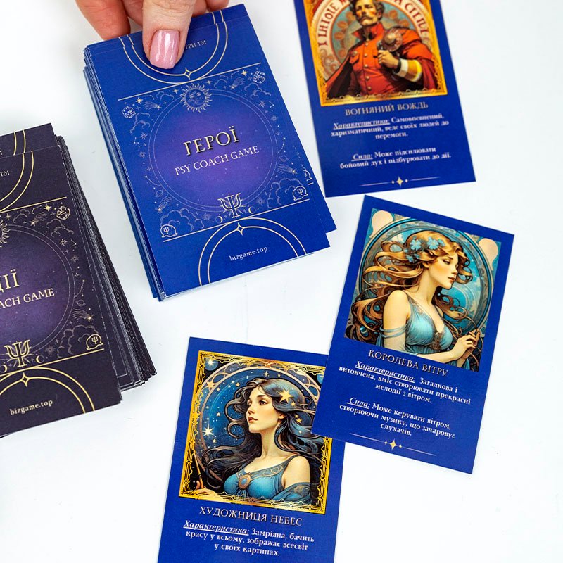 «PSY COACH GAME» — це не просто гра, а унікальний інструмент, що поєднує психологічну діагностику, асоціативне мислення та творчий підхід до вирішення життєвих і професійних завдань. В основі гри — сучасні психологічні методики, які дозволяють клієнту швидко перейти від усвідомлення проблеми до конкретних рішень, а ведучому — працювати ефективно, без упереджень і з максимальною користю для клієнта.