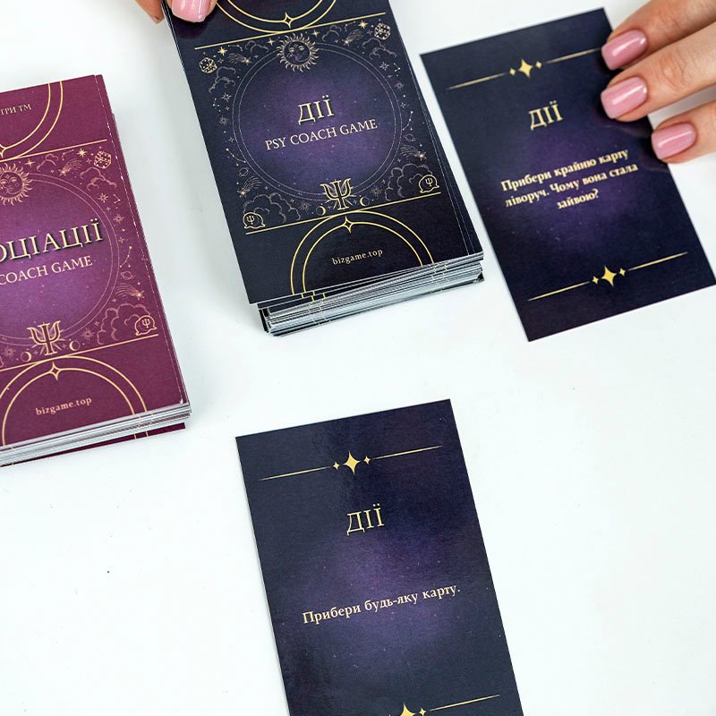 - 72 карти «Дії» — унікальні сеттинги для глибокої роботи