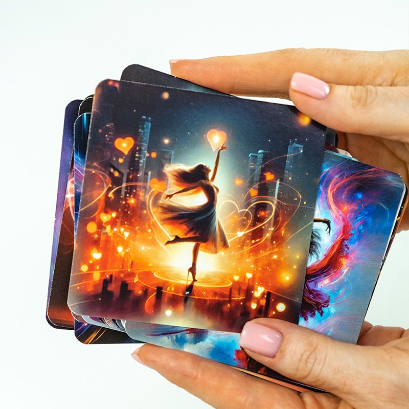 «Танець Моєї Мрії» — це колода, що народилася з натхнення рухом, свободою та глибиною людських мрій. Кожна карта — це не просто зображення, а цілий всесвіт, де динаміка танцю переплітається з потужними, надихаючими посланнями. Саме ця синергія візуального й словесного впливу створює унікальний простір для трансформації, допомагає відчути себе творцем власної реальності, знайти внутрішню гармонію та сміливо рухатися до своїх цілей.