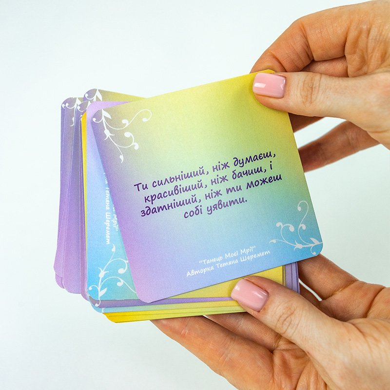 Кожна карта м’яко підштовхує до дії, допомагає клієнтам і собі самому побачити нові можливості, зняти обмеження, відчути радість руху вперед.
