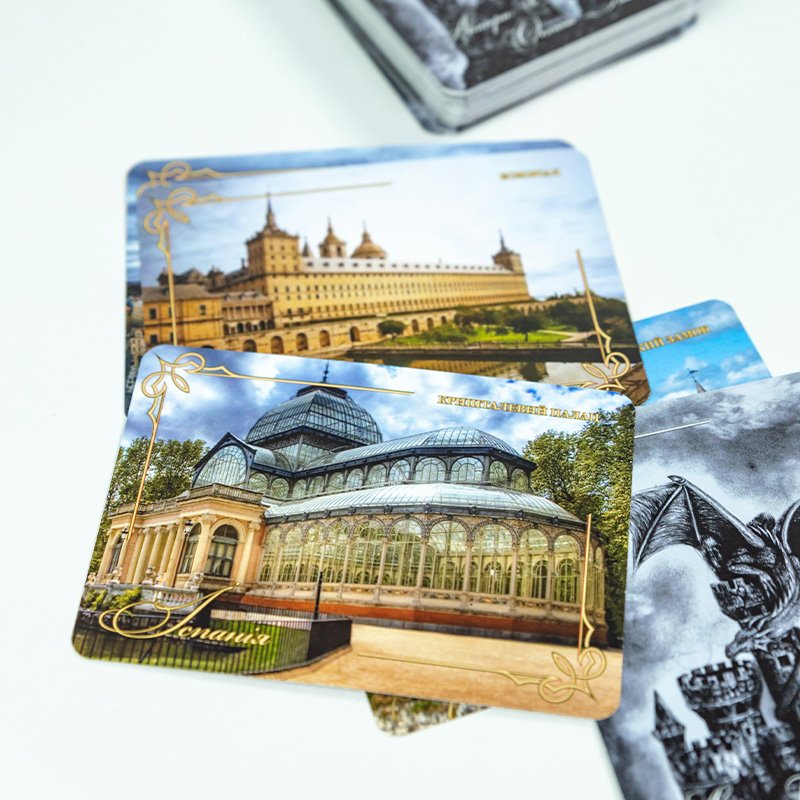- 60 карт-порталів (125х85 мм) із зображеннями замків, що пробуджують інтуїцію та запускають потік асоціацій