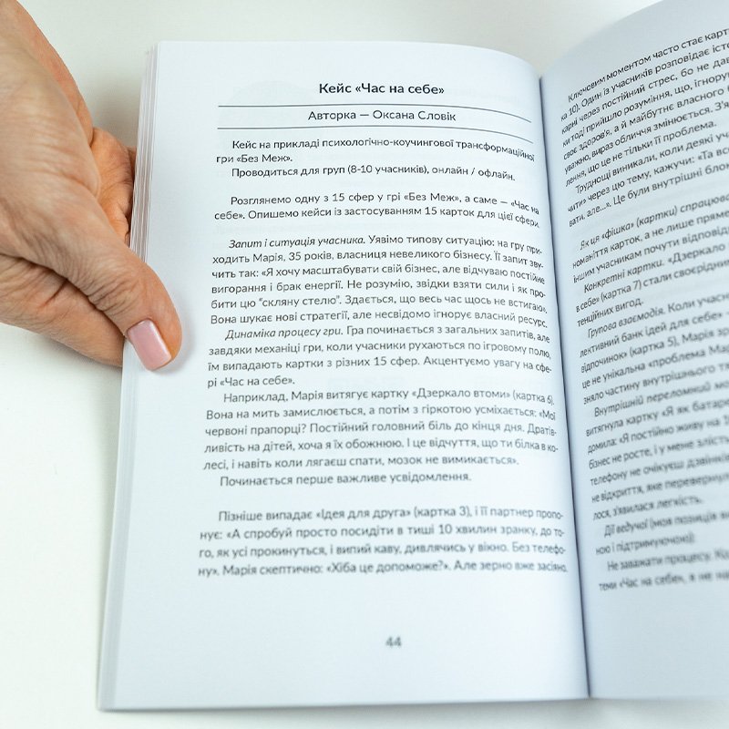 Структура посібника вибудувана навколо реальних кейсів. Кожен розділ – це конкретна історія з практики ігропрактика плюс детальний розбір того, як саме проводилася гра, на що спирався ведучий, які інструменти використовувалися та які результати отримали учасники.